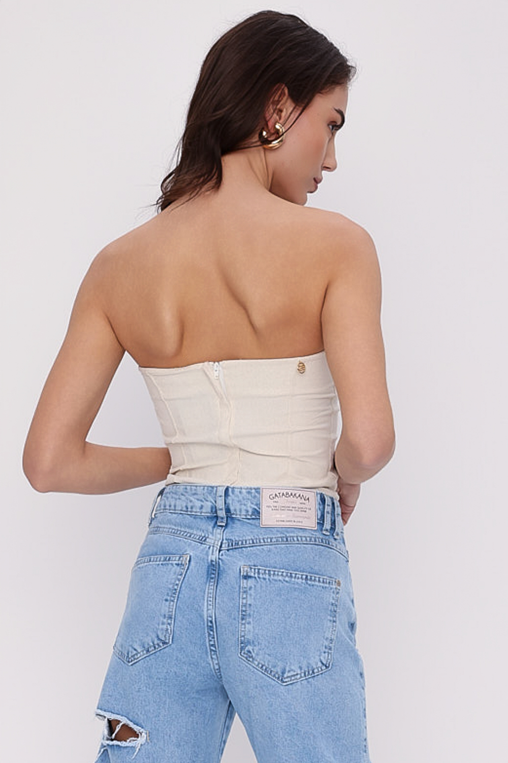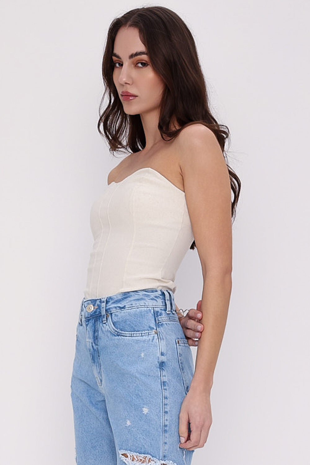 Composição: 67% viscose, 23% poliamida, 7% linho, 3% elastano