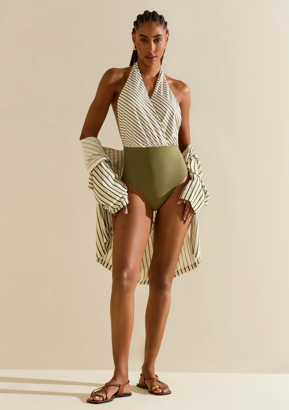 Parte Peça: 84,5% poliéster, 15,5% elastano Parte Forro: 88,6% poliamida, 11,4% elastano